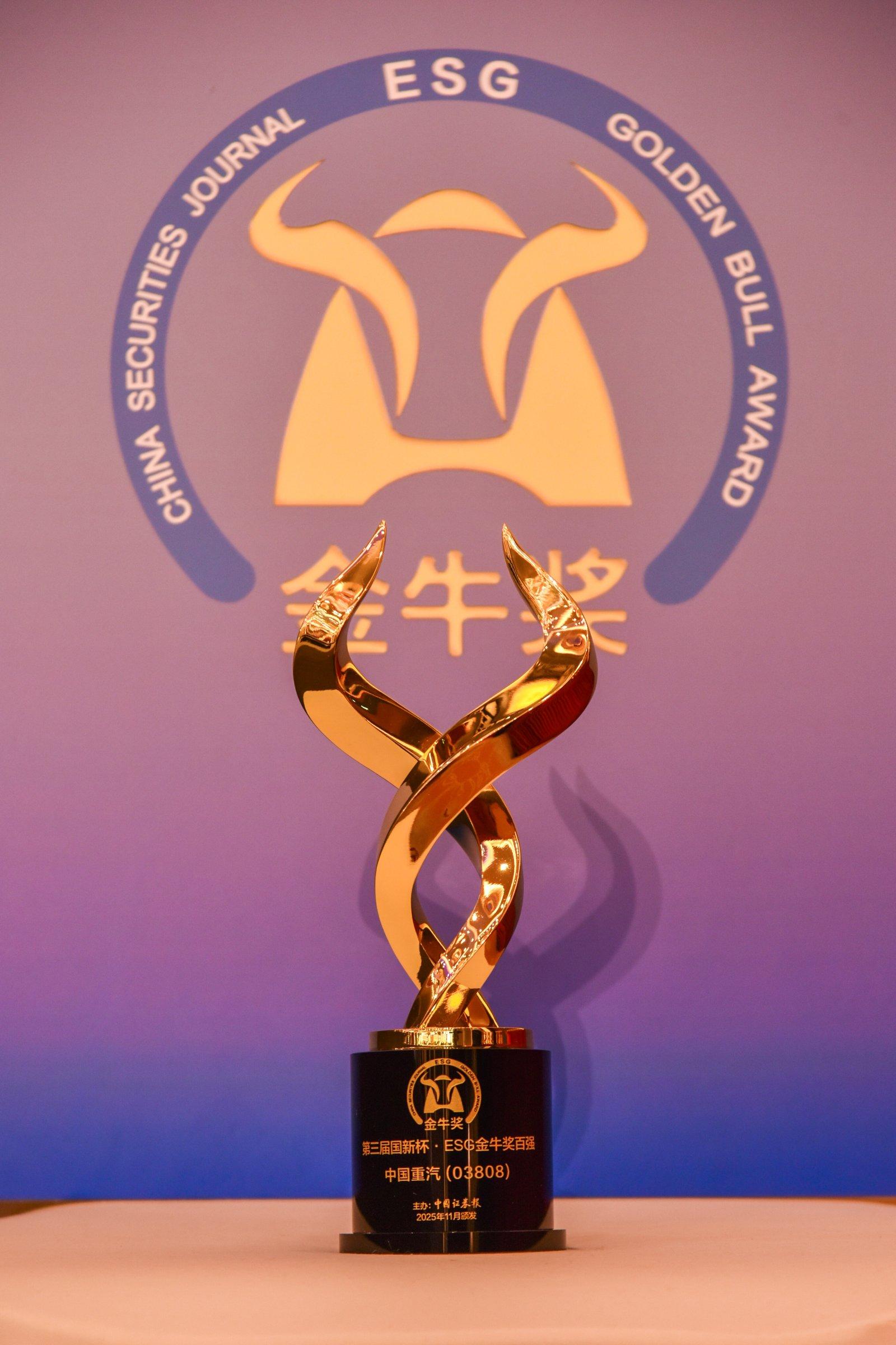 中证报中证网讯(记者 张鹏飞)11月26日,以“治善致远 绿动未来”为主题的2025年金牛企业可持续发展论坛暨第三届国新杯·ESG金牛奖颁奖典礼在江苏苏州举行。本次大会由中国证券报、中国国新控股有限责任公司主办,国新证券承办,苏州工业园区城市发展研究院全面战略支持。备受瞩目的ESG金牛奖榜单揭晓,中国重汽荣获“ESG金牛奖百强”奖项。